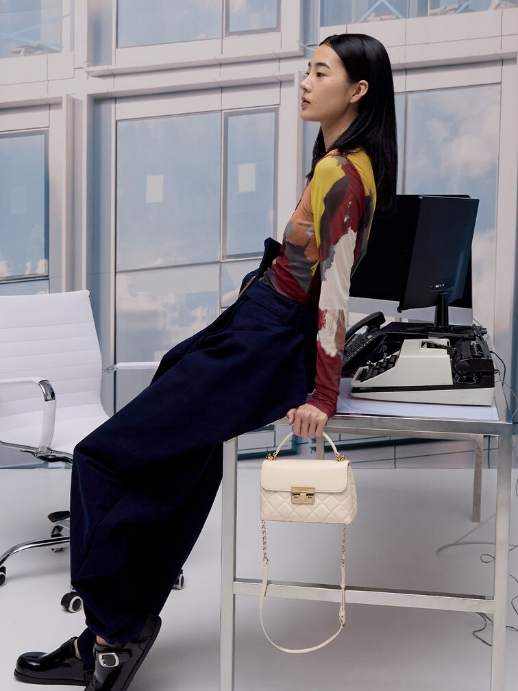 Từ công việc đến giờ vui vẻ, chiếc túi xách Alva màu đen này sẽ đồng hành cùng bạn trong mọi dịp. Với lớp vải chần bông bên ngoài, chiếc túi này vừa đa năng vừa thanh lịch. Ngoài ra, dây đeo xích có thể tháo rời giúp bạn rảnh tay.