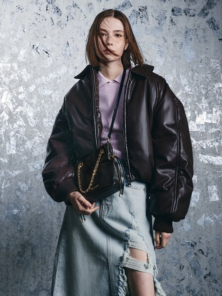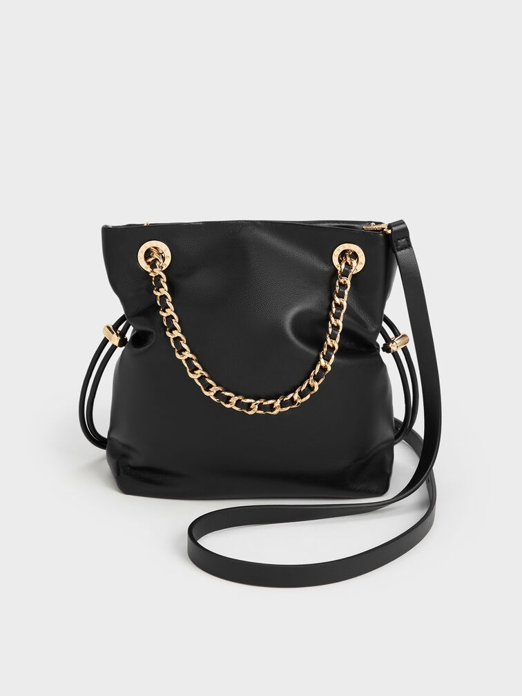 Với quai xách xích bện màu vàng, chiếc túi đeo chéo Arya màu đen này vừa thời trang vừa tiện dụng. Thắt chặt dây rút ở hai bên để tạo hình dáng đặc biệt hoặc thả dây nếu bạn cần thêm không gian chứa đồ.