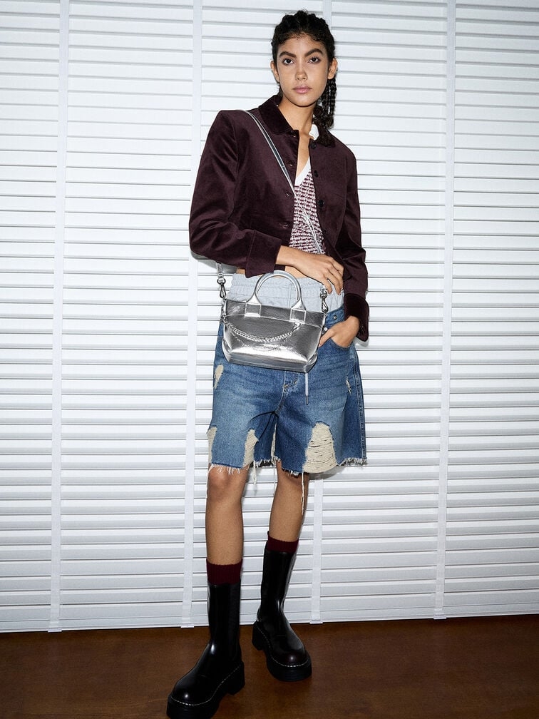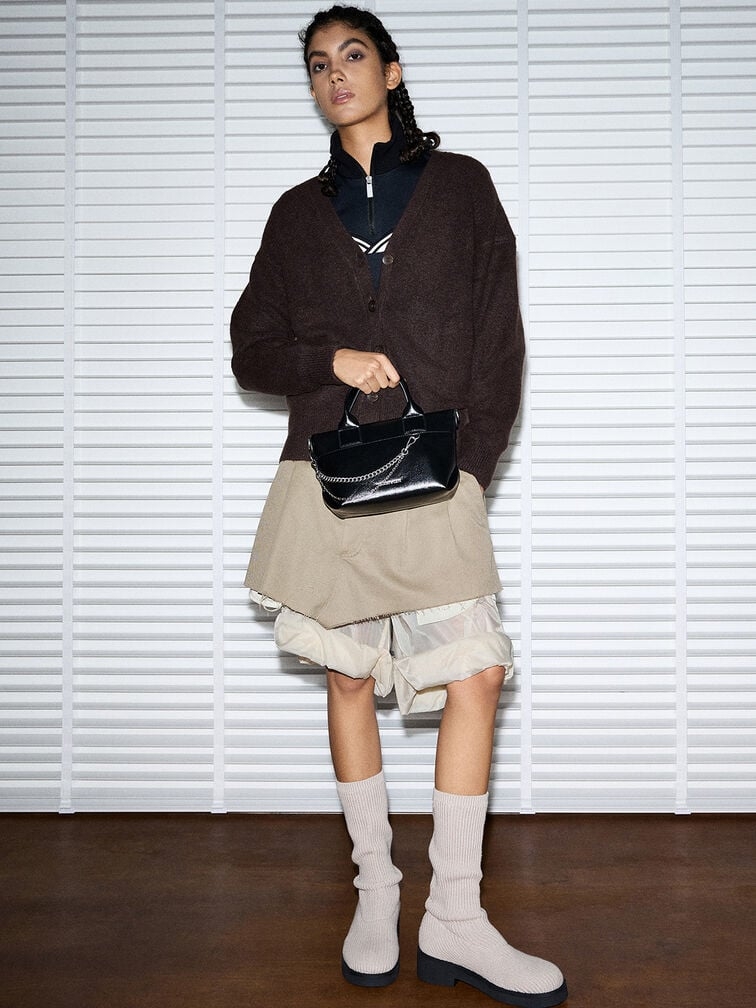 Nếu bạn đang tìm kiếm một chiếc túi màu đen không quá cơ bản, thì chiếc túi Atwood này sẽ là lựa chọn hoàn hảo dành cho bạn. Hoàn thiện với lớp hoàn thiện hiệu ứng nhăn, thiết kế túi tote cổ điển đã được cải tiến với các nếp gấp xếp li ở bên hông để tăng thêm sự thú vị về mặt thị giác. Nếu vậy vẫn chưa đủ, dây đeo được trang trí bằng xích khiến chiếc túi này thậm chí còn ngầu hơn nữa. Mang nó qua quai xách đôi của túi tote, hoặc chỉ cần gắn dây đeo vai dày để rảnh tay.