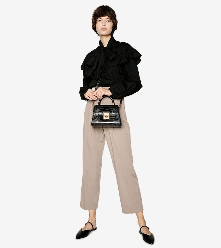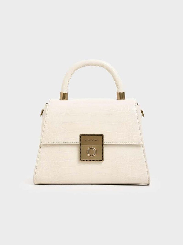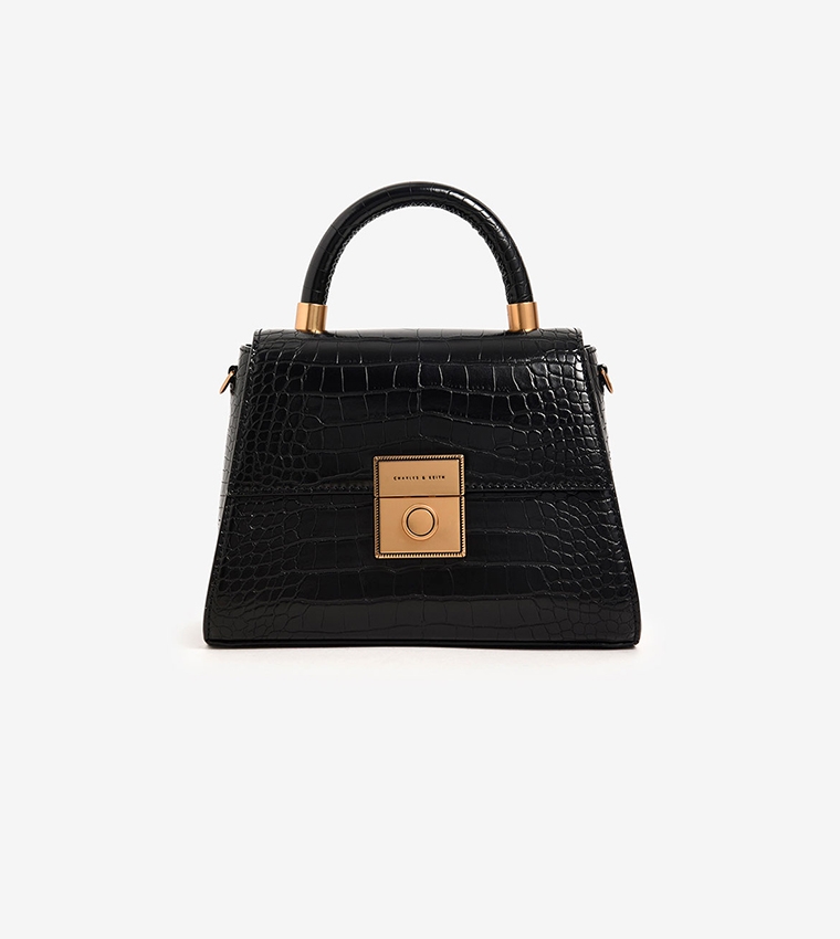 Một chiếc túi xách hình thang thời trang với hình dáng chắc chắn toát lên phong cách cổ điển. Chất liệu sang trọng với họa tiết dập nổi giống da cá sấu là một món đồ hấp dẫn. Mặc dù phần mở hơi hẹp, nhưng bạn có thể đựng điện thoại thông minh, ví gấp đôi, son môi, khăn tay, v.v. bên trong, rất hữu ích cho nhiều dịp, từ những buổi đi chơi bình thường vào cuối tuần đến các bữa tiệc.