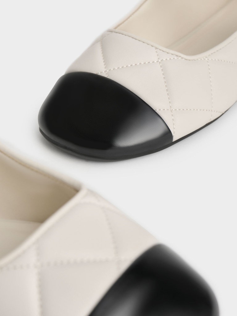 Nổi bật giữa đám đông với đôi giày Mary Janes chần bông màu trắng phấn này, đi kèm với chi tiết mũi giày màu đen bất ngờ. Chắc chắn sẽ tạo điểm nhấn cho tổng thể trang phục của bạn, chúng vừa bắt mắt vừa là một điểm nhấn thời trang cho phong cách cổ điển. Hãy kết hợp chúng với quần yếm denim và áo thun kẻ sọc trắng để có một vẻ ngoài quyến rũ, sẵn sàng cho những buổi dã ngoại.
