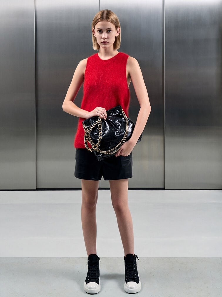 Làm bừng sáng bộ trang phục sang trọng với độ bóng nhẹ khi bạn đeo túi hobo dây xích đôi Duo của chúng tôi. Với kiểu dáng hobo rộng thùng thình để tạo nên phong cách mát mẻ dễ dàng, phụ kiện này có họa tiết nhăn độc đáo để tăng thêm sức hấp dẫn về mặt thị giác. Với màu đen đa năng, phụ kiện đáng mơ ước này cũng có quai xách dây xích đôi — một dày và một mỏng — để tăng gấp đôi các lựa chọn tạo kiểu và tăng gấp đôi sự quyến rũ.