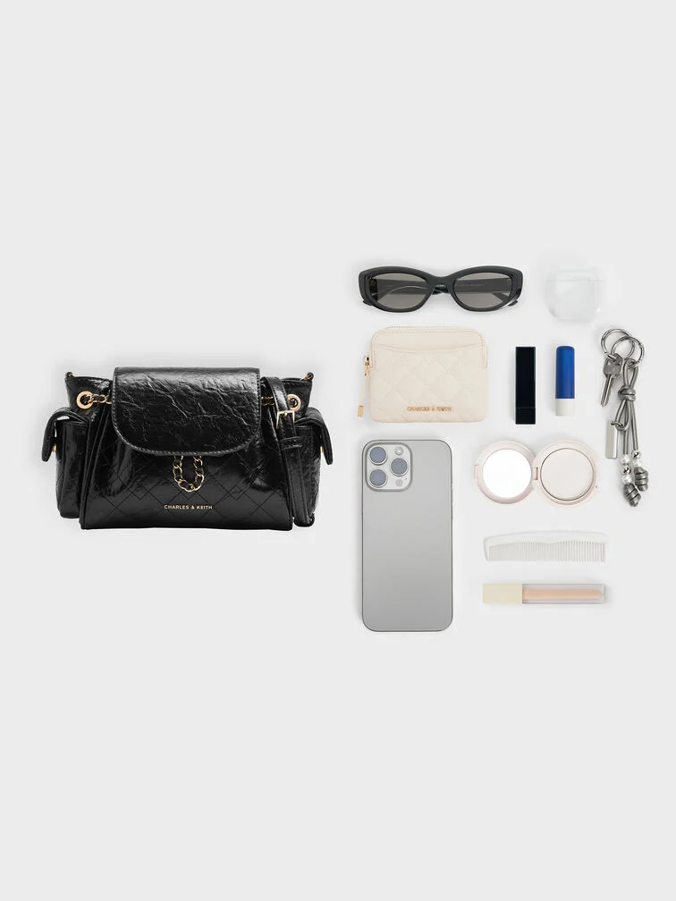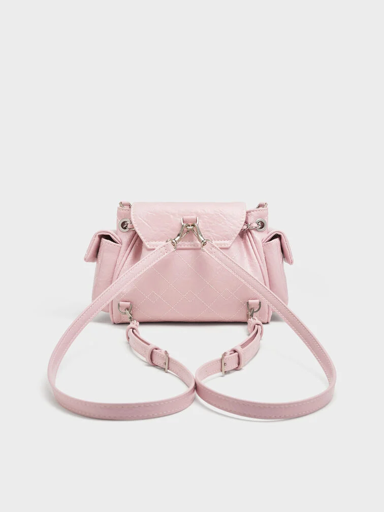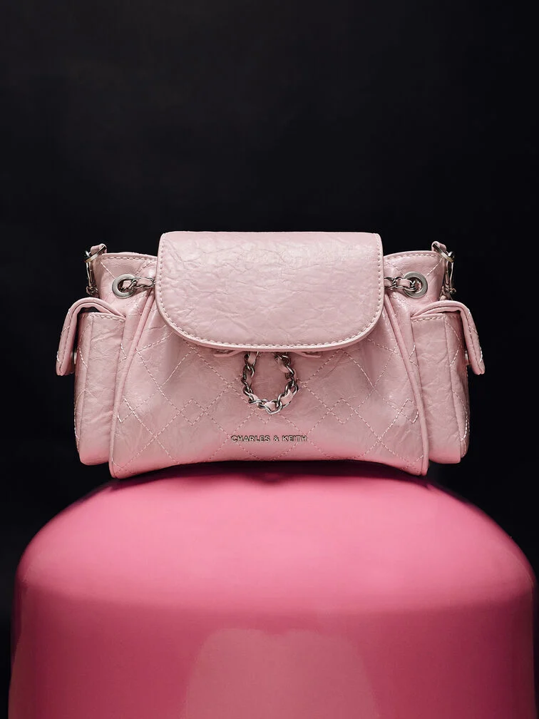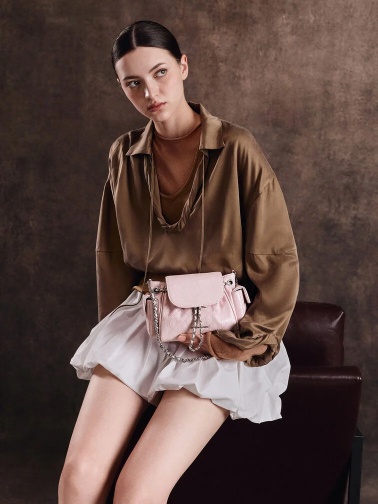 Balo Duo hai chiều vừa tiện dụng vừa thời trang. Với các túi bên hông tiện dụng và ngăn chính rộng rãi, giờ đây bạn có thể dễ dàng đựng những vật dụng thiết yếu hàng ngày. Dây đeo xích bện tông vàng tạo điểm nhấn sáng bóng, tạo nên sự tương phản nổi bật với lớp sơn kem mềm mại.