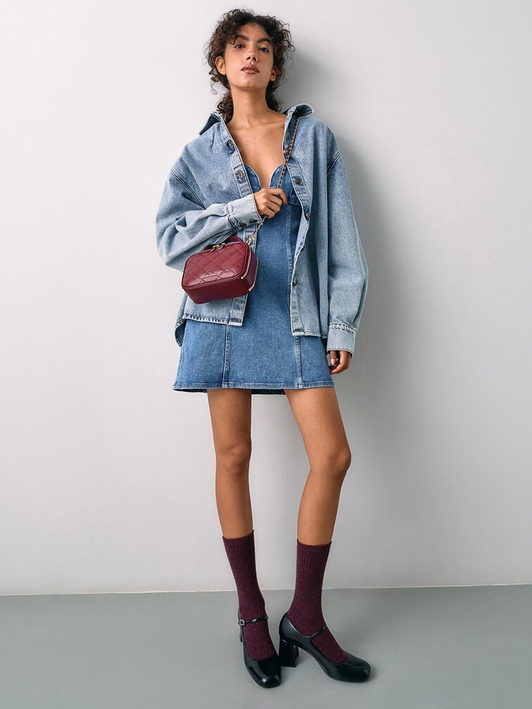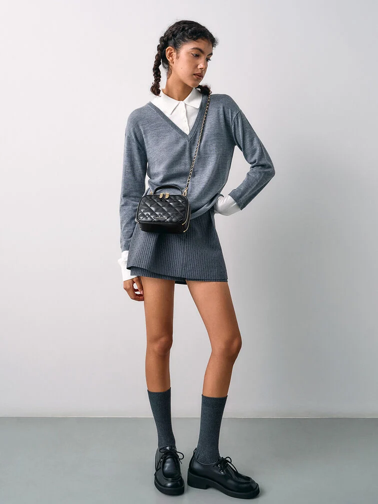 Túi đựng đồ trang điểm Duo này chắc chắn là một sự bổ sung xứng đáng cho bất kỳ bộ sưu tập nào. Với lớp hoàn thiện màu đen vượt thời gian, thiết kế chần bông hình hộp và quai xách cổ điển, chiếc túi đựng này thanh lịch ở mọi góc độ. Hoàn thiện với phần cứng tông màu vàng sáng bóng, nó cũng có khóa kéo kép ở mặt trước và mặt sau, cung cấp không gian rộng rãi để đựng những vật dụng thiết yếu của bạn. Nếu bạn muốn rảnh tay, chỉ cần kẹp vào dây xích bện và điều chỉnh theo độ dài thả mong muốn của bạn.