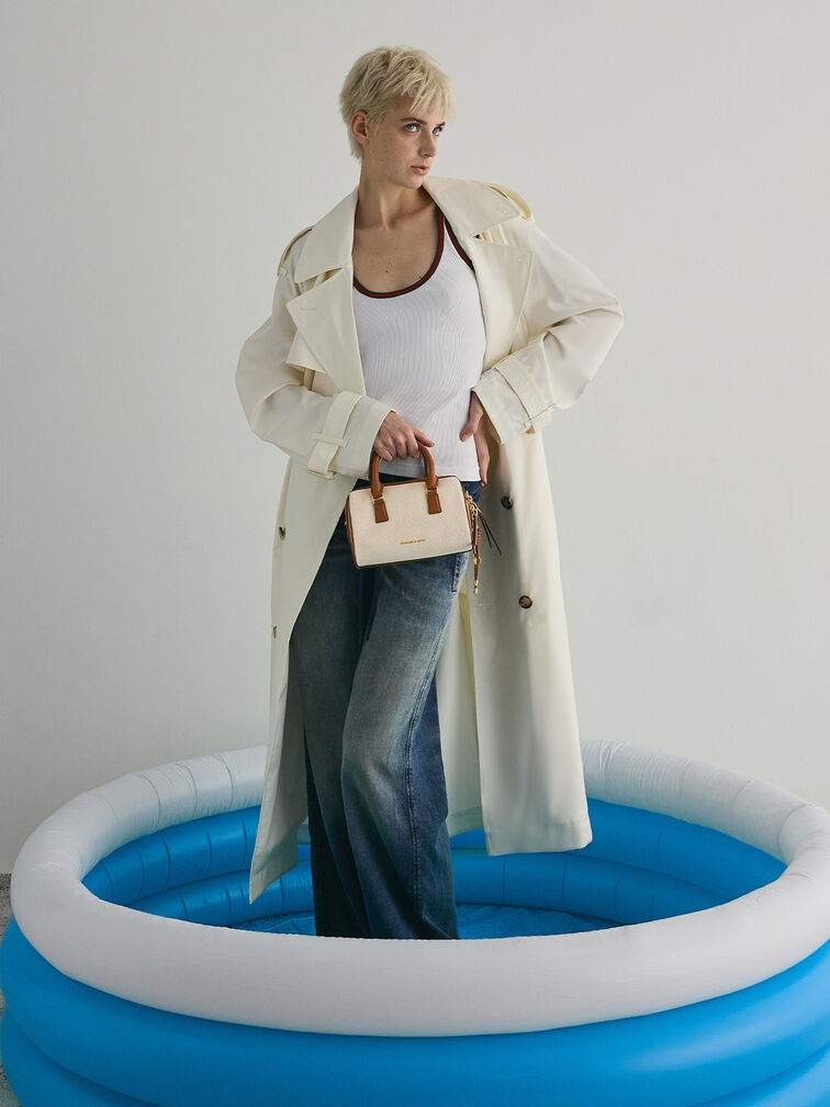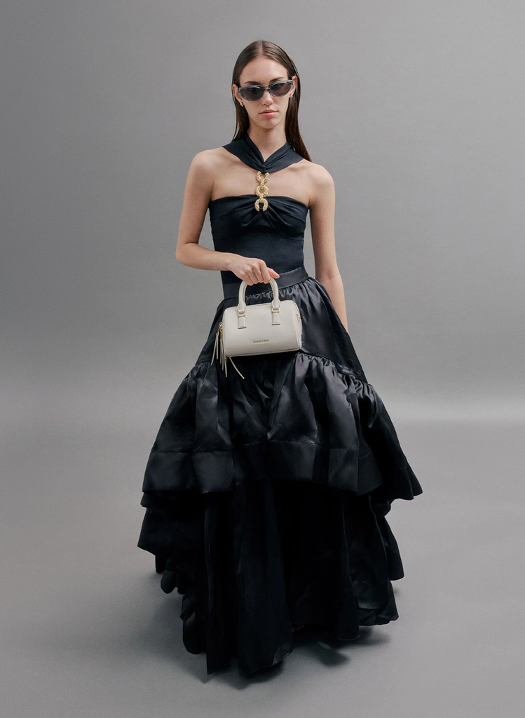 Đúng với hình bóng cổ điển, túi bowling này có đáy phẳng, đỉnh cong và quai xách đôi. Hoàn thiện với lớp hoàn thiện màu đen vượt thời gian, đây là ứng cử viên sáng giá cho trang phục hàng ngày. Điểm khác biệt của nó là dây đeo vai có thể tháo rời với thiết kế bện -- vừa có chức năng vừa bắt mắt, tạo thêm nét riêng biệt cho tổng thể diện mạo.