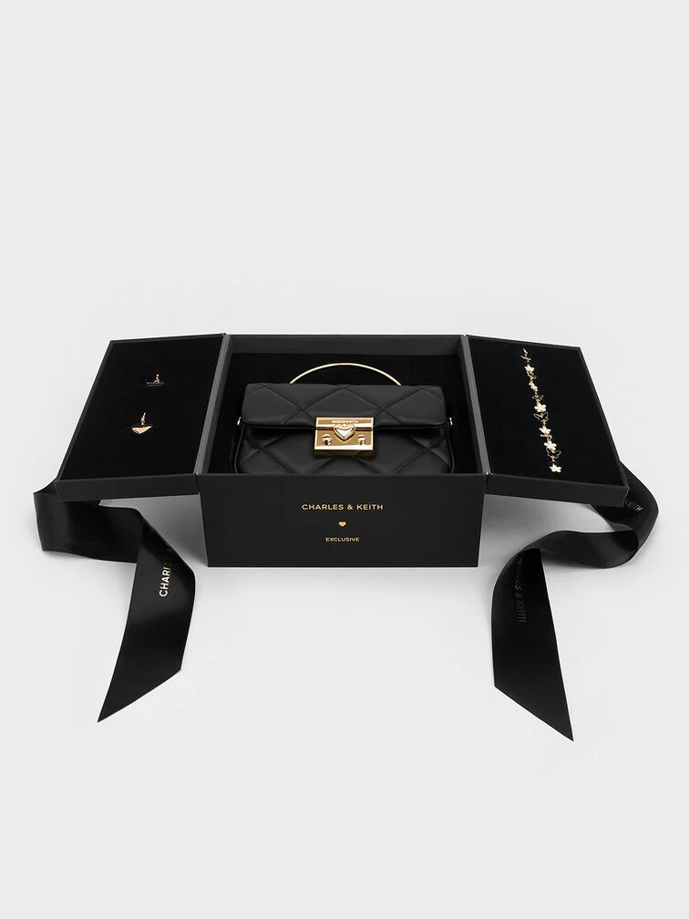 Cuộc tìm kiếm chiếc túi đen nhỏ hoàn hảo của bạn sẽ kết thúc tại đây. Với quai xách thanh lịch và khóa bấm màu vàng (đi kèm chi tiết trái tim đáng yêu), những yếu tố tinh tế này nâng tầm thiết kế vượt thời gian. Kết cấu chần bông sang trọng của nó vừa sang trọng về cả hình thức vừa mang lại cảm giác, vì vậy nó sẽ dễ dàng bổ sung cho bất kỳ bộ trang phục nào. Bạn có thể xách nó bằng quai xách trên cùng hoặc gắn dây đeo có thể điều chỉnh để đeo trên vai -- dù bằng cách nào, nó cũng sẽ nâng tầm vẻ ngoài của bạn.